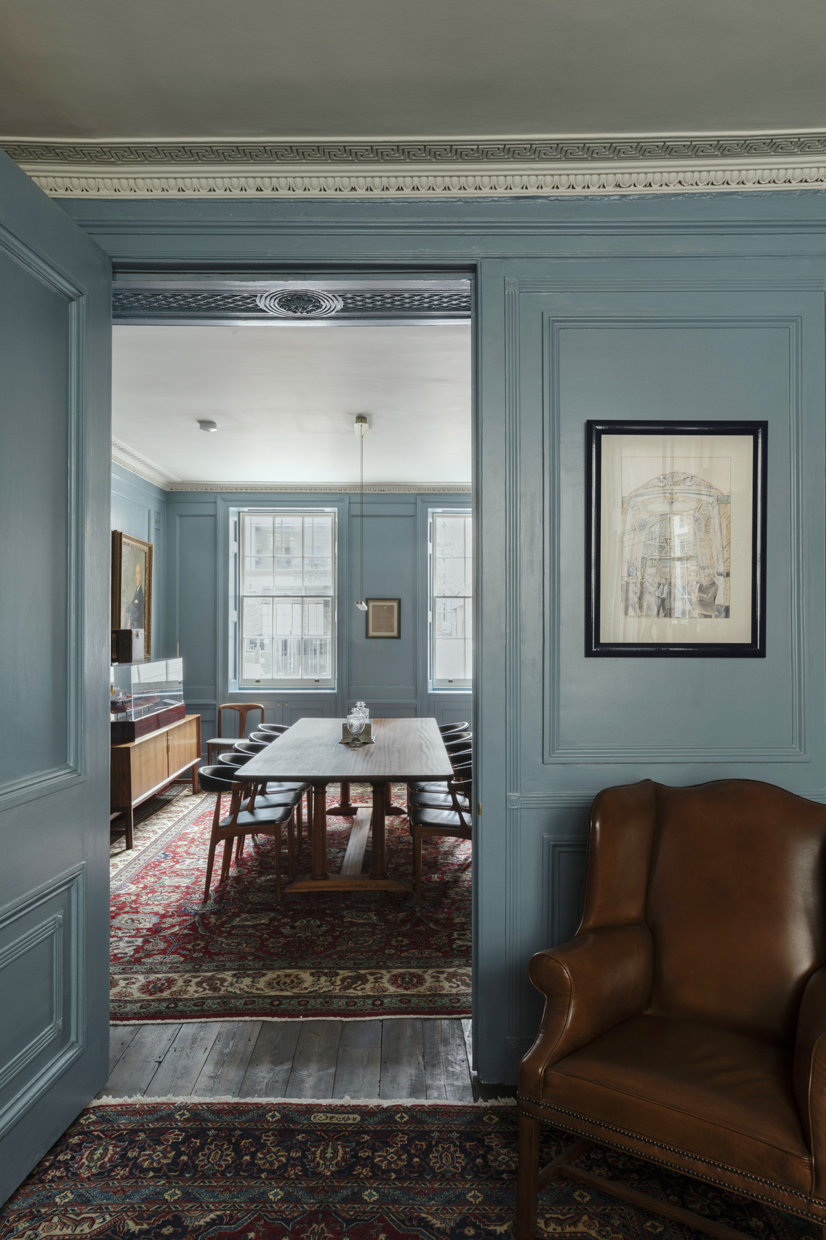 “The ceiling heights, grand proportions, and original features allowed for the creation of a truly special workplace,” said Chris Dyson, principal of Chris Dyson Architects. “This project was a labour of love for our client and our team – every detail, from the fireplace to the panelling, was treated with care.”