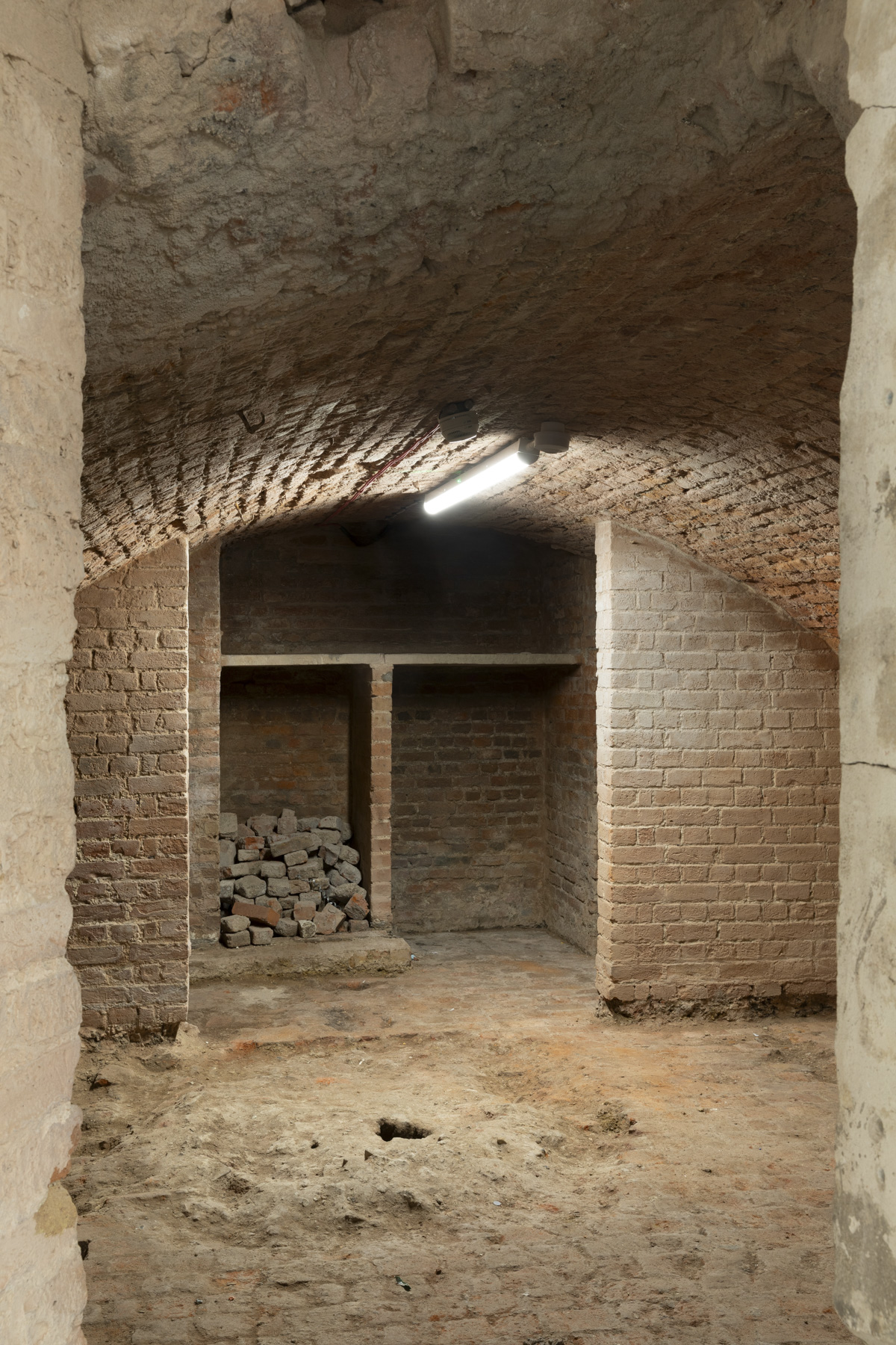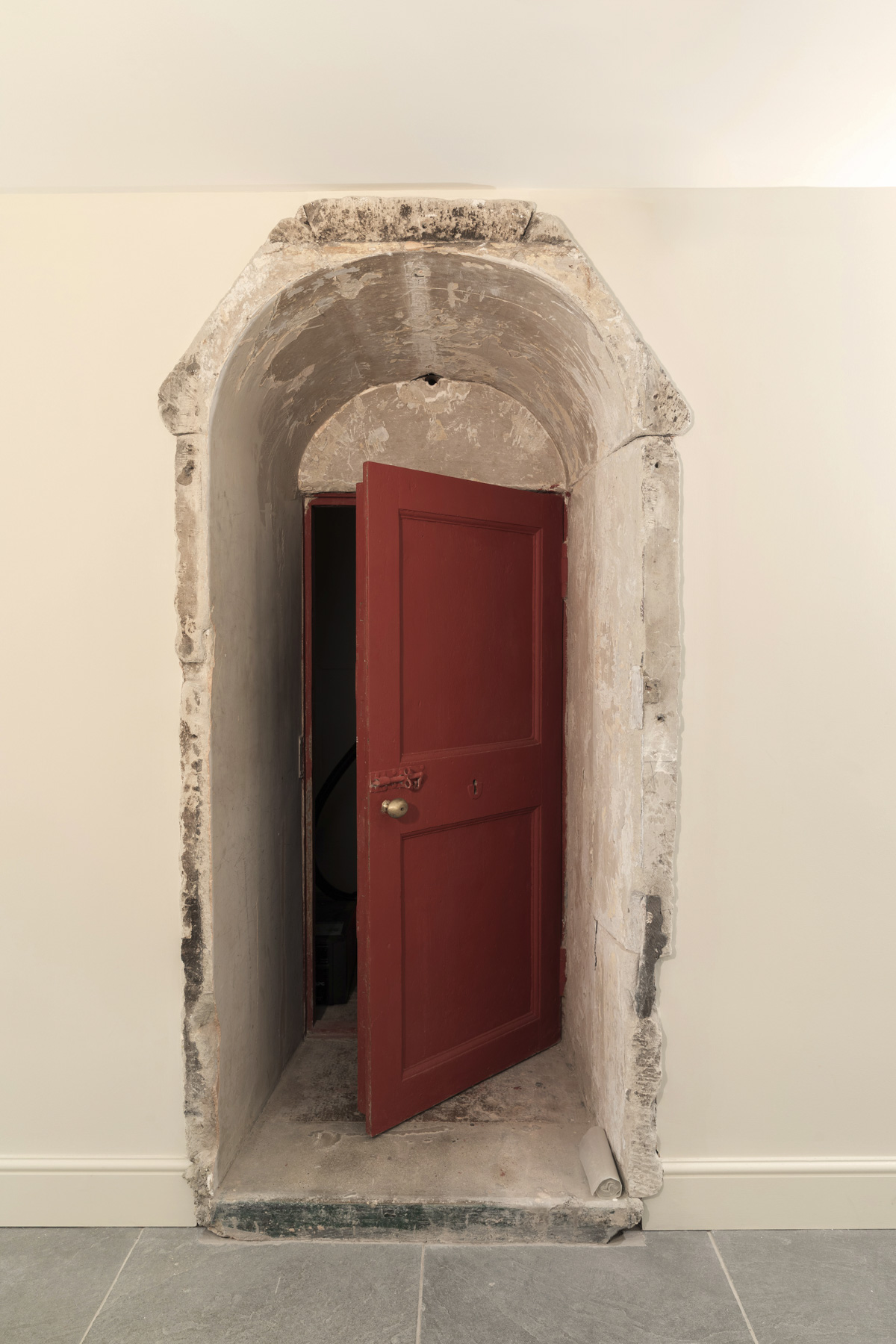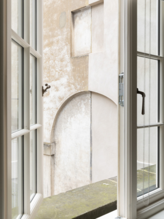 Prior to its acquisition, the townhouse had been subject to numerous alterations. Much of the architects’ work involved removing later interventions to maximise daylight and reveal the structure’s original charm. This process of careful unpicking yielded a number of discoveries, including an intact basement strong room with a heavy metal door and concealed brick-arched vault, leading to an underground cold store. The latter has been retained and will form the centrepiece of a new wine cellar, capped with a glass floor.