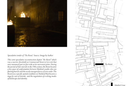 The RIBA Dissertation Medal was won by Finlay Aitken at the Bartlett School of Architecture (UCL), UK, for Remaking the Extractive Island: Landscape, custom and misrule in Shetland. His thesis reimagines the shifting landscapes of the Shetland Islands using the idea of ‘island-making’, a form of self-mapping that shapes how people relate to their surroundings. Tracing different periods throughout the history of the Shetland Islands and analysing the nuances of walking the line between spatial strategies of environmental management and symbolic expressions of identity, the work argues for a renewed approach to extractive spaces and infrastructures.