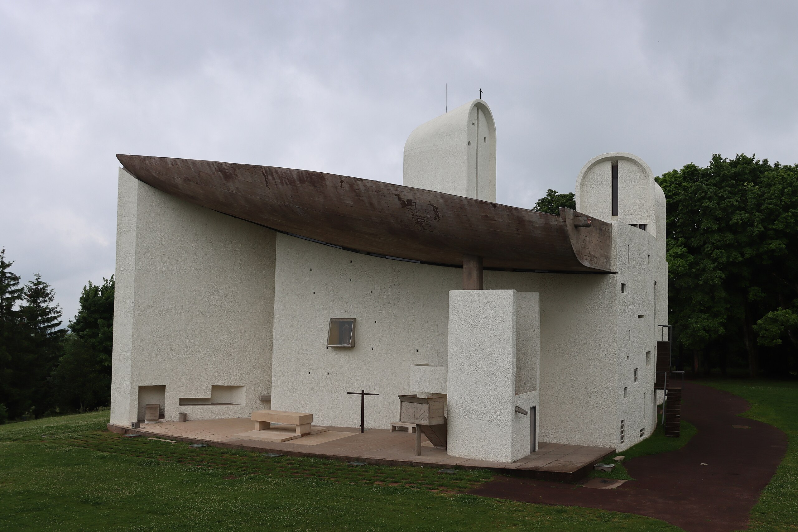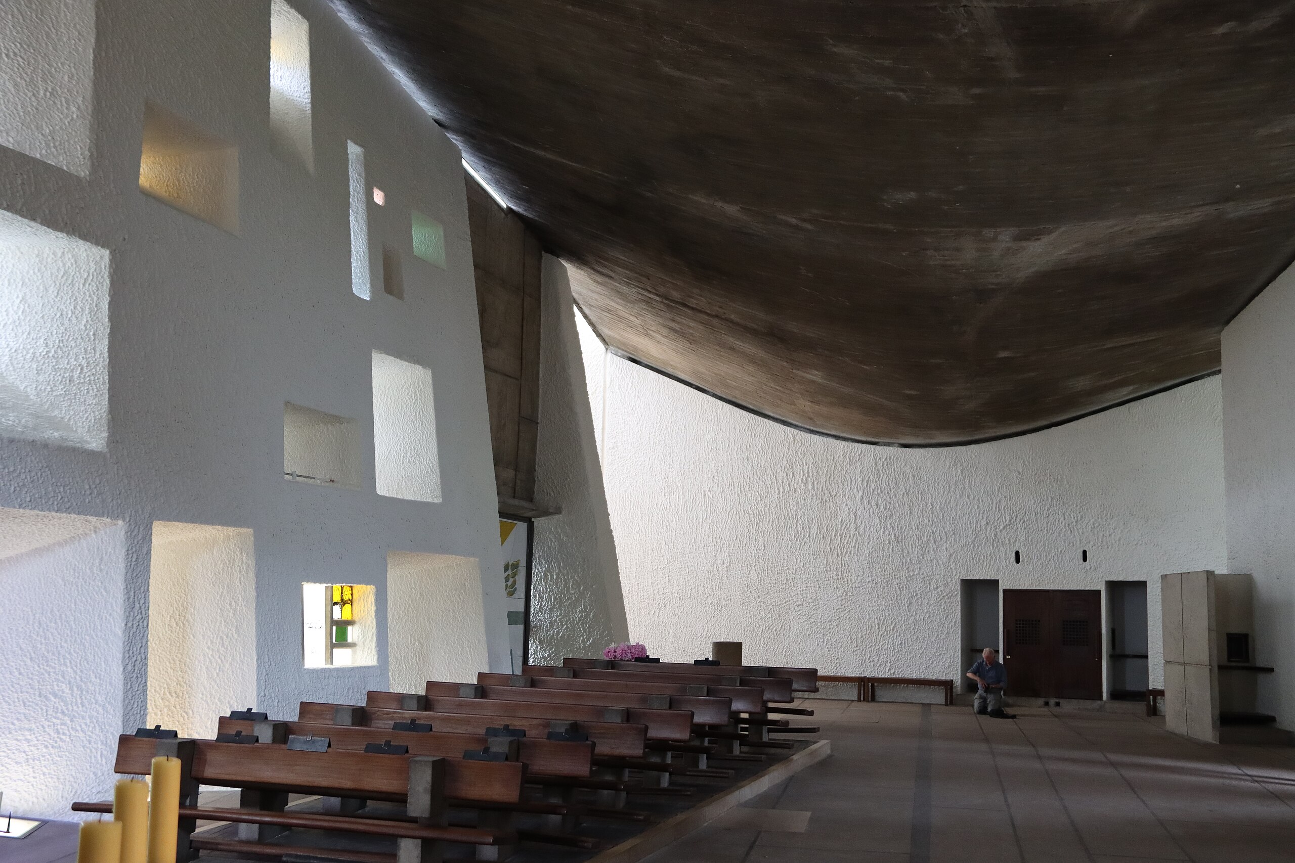 Thirty years later the 63-year-old Le Corbusier was approached by the Archbishop of Bescaçon to design a new church on a hill overlooking the Swiss border in France. As an atheist who believed the church was a ‘dead institution’ he turned this down but was later persuaded by the modernist thinker Father Alain Couturier (who went on to secure Matisse for the chapel at St-Paul-de-Vence and the monastery of La Tourette with Corbusier) to visit the site. Once here, he was smitten by the landscape and so accepted the commission on the understanding that he was free to “create in absolute freedom.”