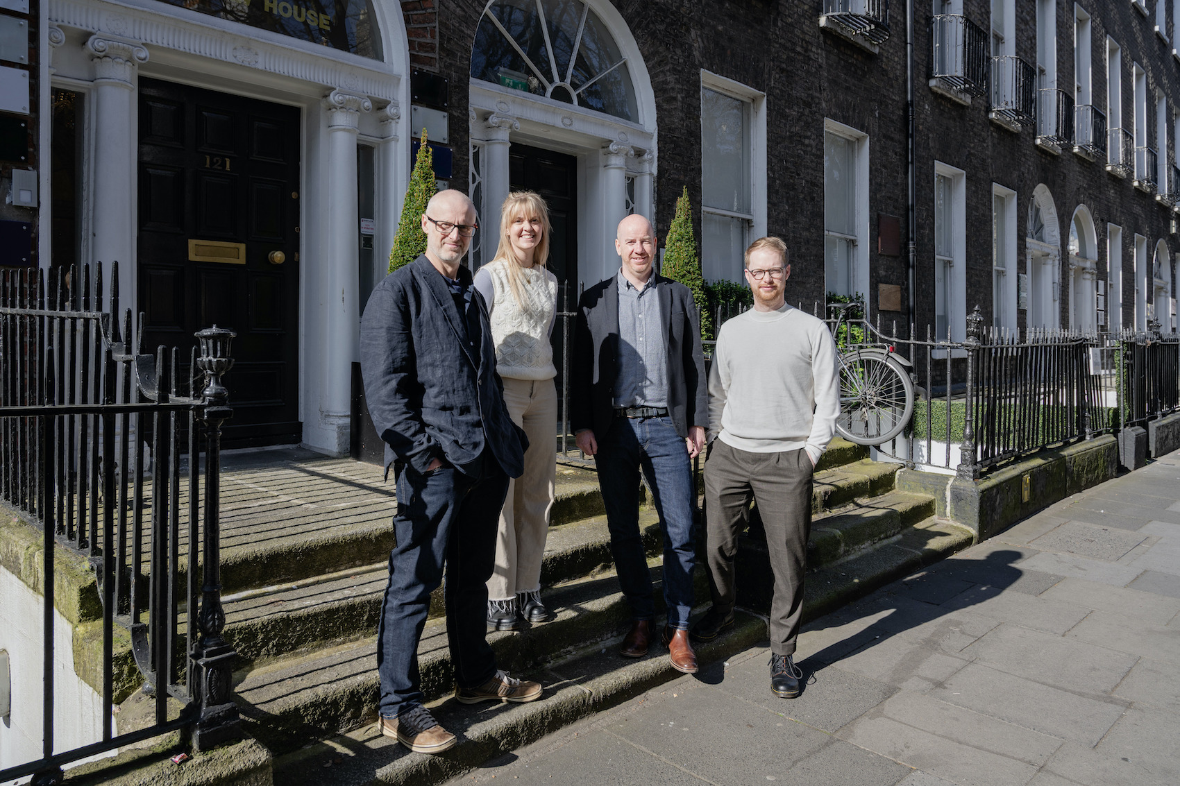 Photographed from left to right outside the Howells Dublin office which opened in May 2025: Simon Pearson, Jessie Low, Daniel Mulligan and Stephen Jackson.