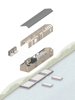 TiggColl’s modular floating house on the Grand Union Canal reimagines waterside living through sustainable materials, accessible design, and an ingenious system of interlocking steel hulls.