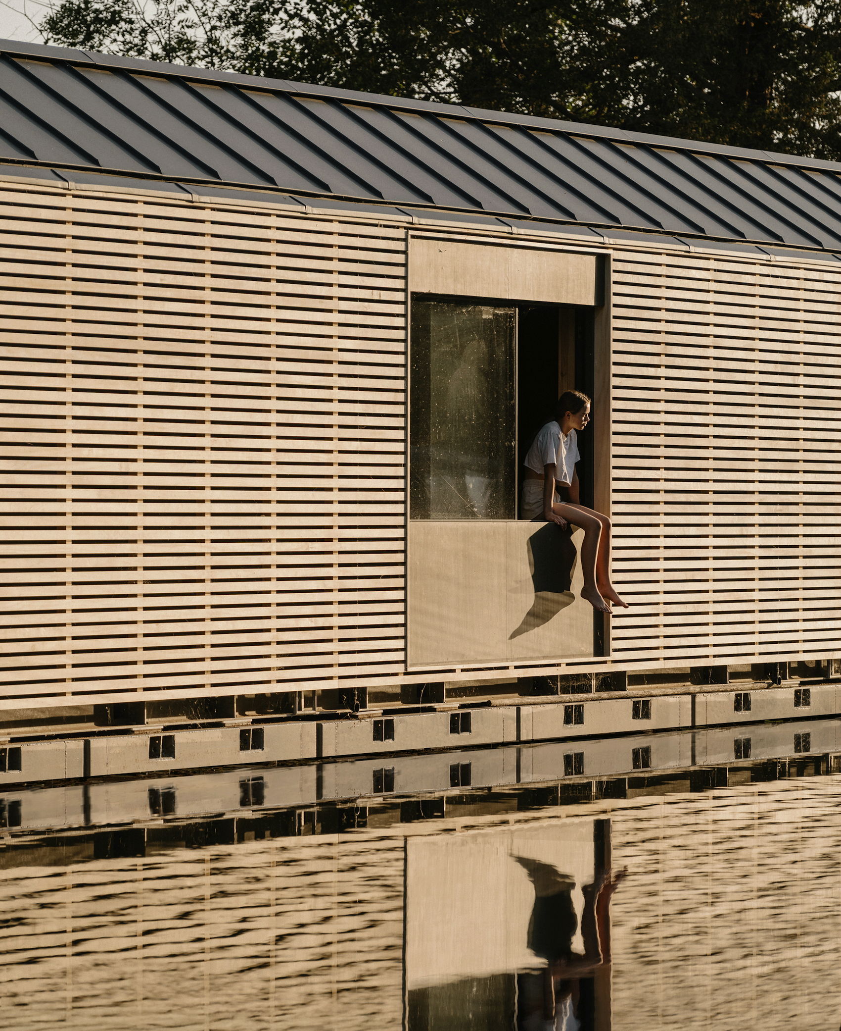 “Our ambition was to create an accessible family home that maximises the limited space available, while making sure that the houseboat touches the surroundings with a sense of lightness – bringing nature, reflectivity and sunlight as close as possible,” commented Rachel Coll, founding director of TiggColl. “It is a home designed for embracing nature, and facilitating modern family life, on the water.”