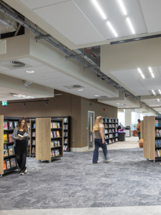 The remaining three floors of the building will be developed in future phases, as the new city campus forms part of a wider regeneration scheme at Kings Square. While mainly offering university services, the building will also accommodate public usage, including a new arts, health and wellbeing centre and Gloucester’s central library on the ground floor.