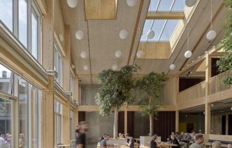 New structural elements are designed to complement the existing timber frame. Additional loads are carried by new timber structures, ensuring that the original building is not overstressed. The new interventions are conceived as a continuous system rather than discrete additions, and according to Tate, represent “one big wooden structure” integrated throughout the building. This strategy is also designed to support flexibility and long-term adaptability, with spaces able to be reconfigured over time without compromising the overall coherence of the building.