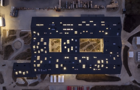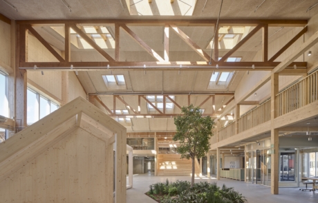 Commissioned by Lars Kann-Rasmussen (son of the company’s founder), the warehouse, was constructed in 1995 and conceived as a test bed for the use of primary untreated timber construction elements. Built almost entirely from wood sourced from Danish and Swedish forests, it explored material behaviour, performance and durability. 30 years on, the experiment had proved successful with the timber structure remaining in good condition and the building itself considered a material and cultural asset for the company. This legacy formed a key component of the brief, as project architect Mette Tony explains: “Our overarching goal was to preserve as much of the building as possible and to carry it forward into the future.”
