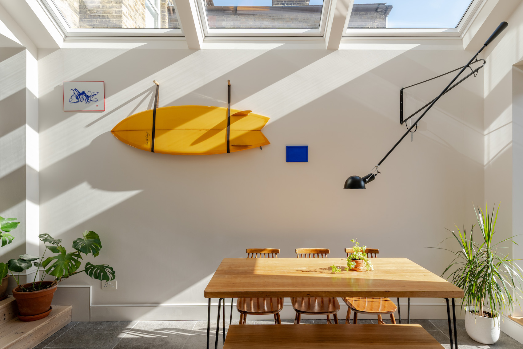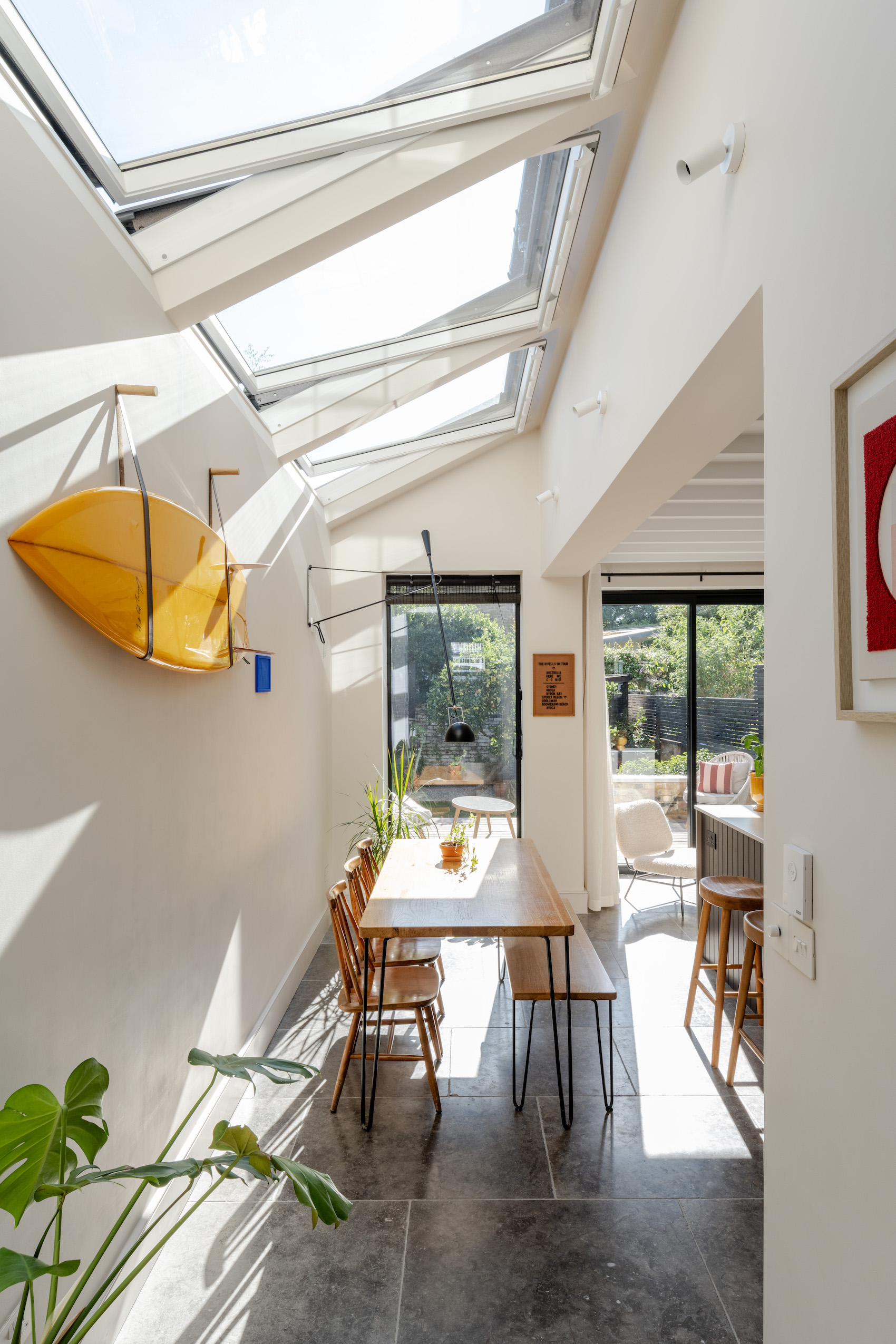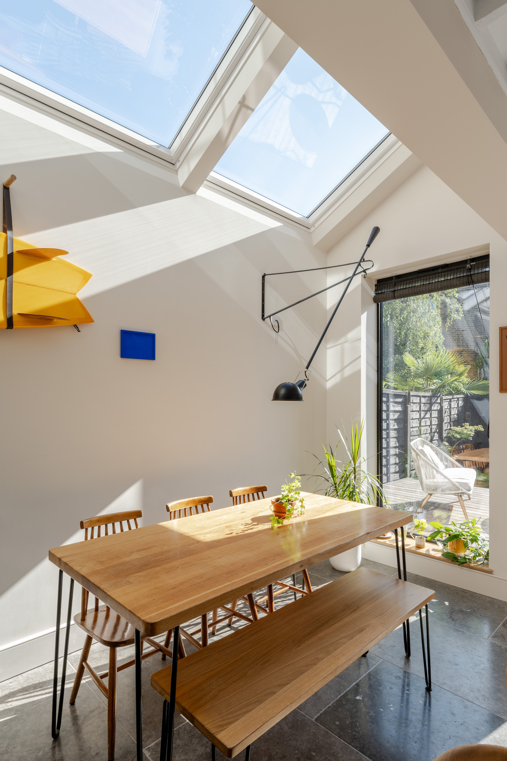Central to this transformation is the use of natural light. “For me, daylight is like water or air,” says Kivell. A bank of VELUX roof windows sits above the open-plan kitchen, creating a bright, calm atmosphere that changes with the seasons. This ‘lightbox effect’ not only enhances wellbeing but also maintains privacy – essential in densely built London neighbourhoods.