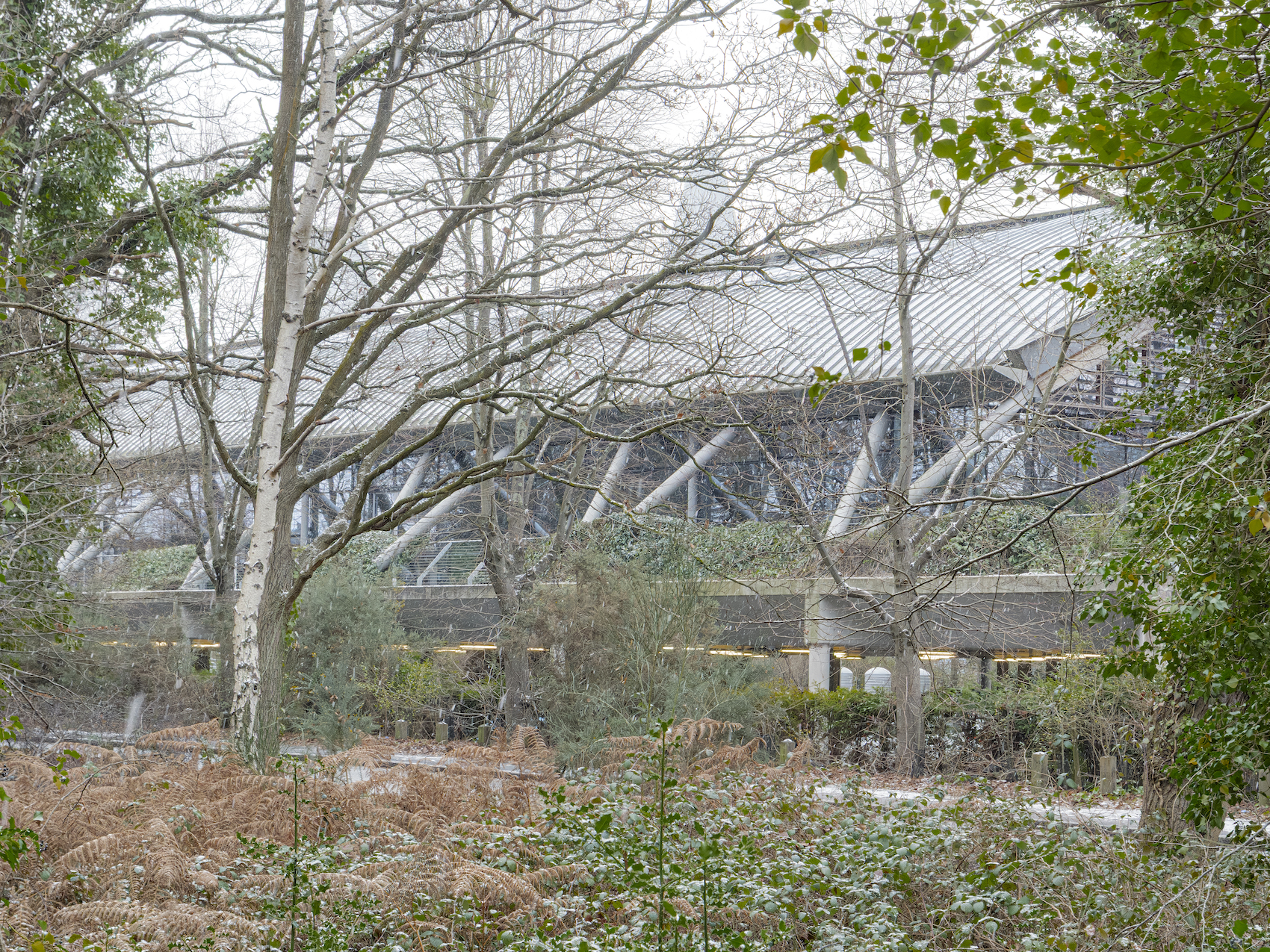 The LPC sits below the level of the surrounding treetops, while new planting promotes biodiversity and enriches the public realm.