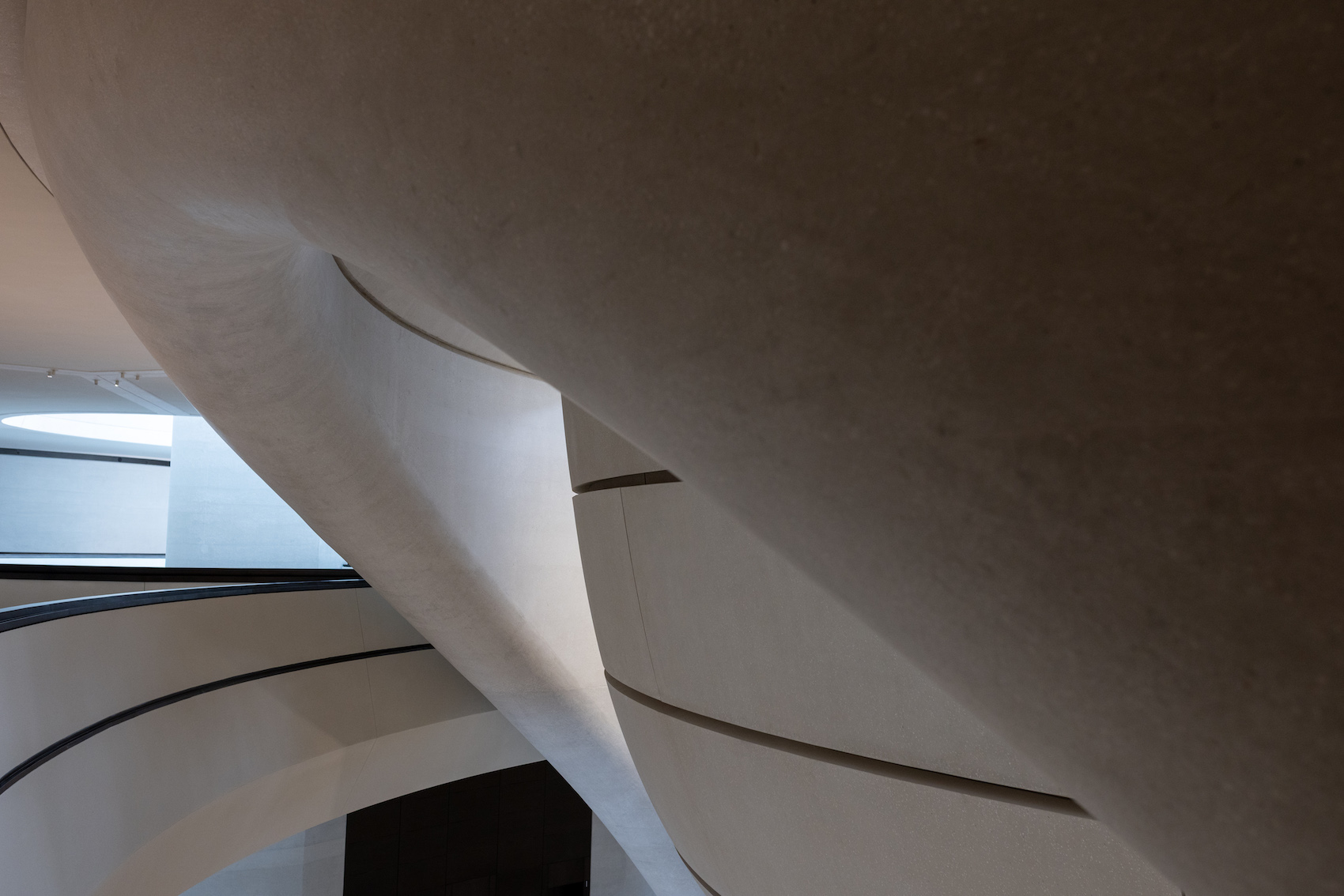 Internally, the museum’s central lobby – Al Liwan – features honed white concrete walls, while the gallery entrances are clad in patinated bronze. Warm white interiors match the tone of Saadiyat Island’s natural sand. The permanent galleries present a collection of more than 1,500 objects, including archaeological finds, historical artefacts, multisensory installations and contemporary commissions. Together, they trace the story of the land from the earliest evidence of human habitation – some 300,000 years ago – to the formation of the modern nation.